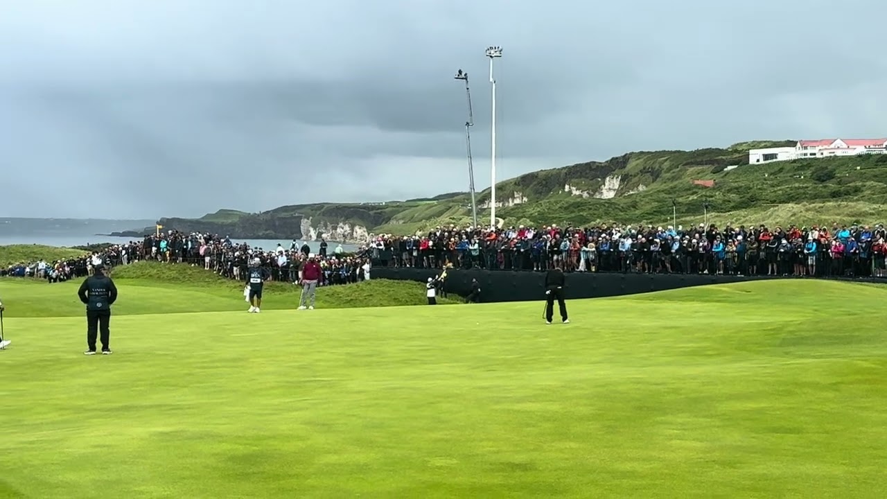 Naopak samotná doprava na turnaj byla naprosto perfektně zorganizovaná. Celá cesta na hřiště vedla po dálnici, přibližně deset kilometrů před Portrushem vás navigace dovedla na obrovské odstavné parkoviště, kde vše řídili ochotní dobrovolníci. Parkování proběhlo hladce, žádné čekání – jen projít bezpečnostní kontrolou a naskočit do připraveného doubledeckeru. Za deset minut jste vystupovali přímo u vstupu na hřiště. Rychlé, efektivní, bez jediné fronty.