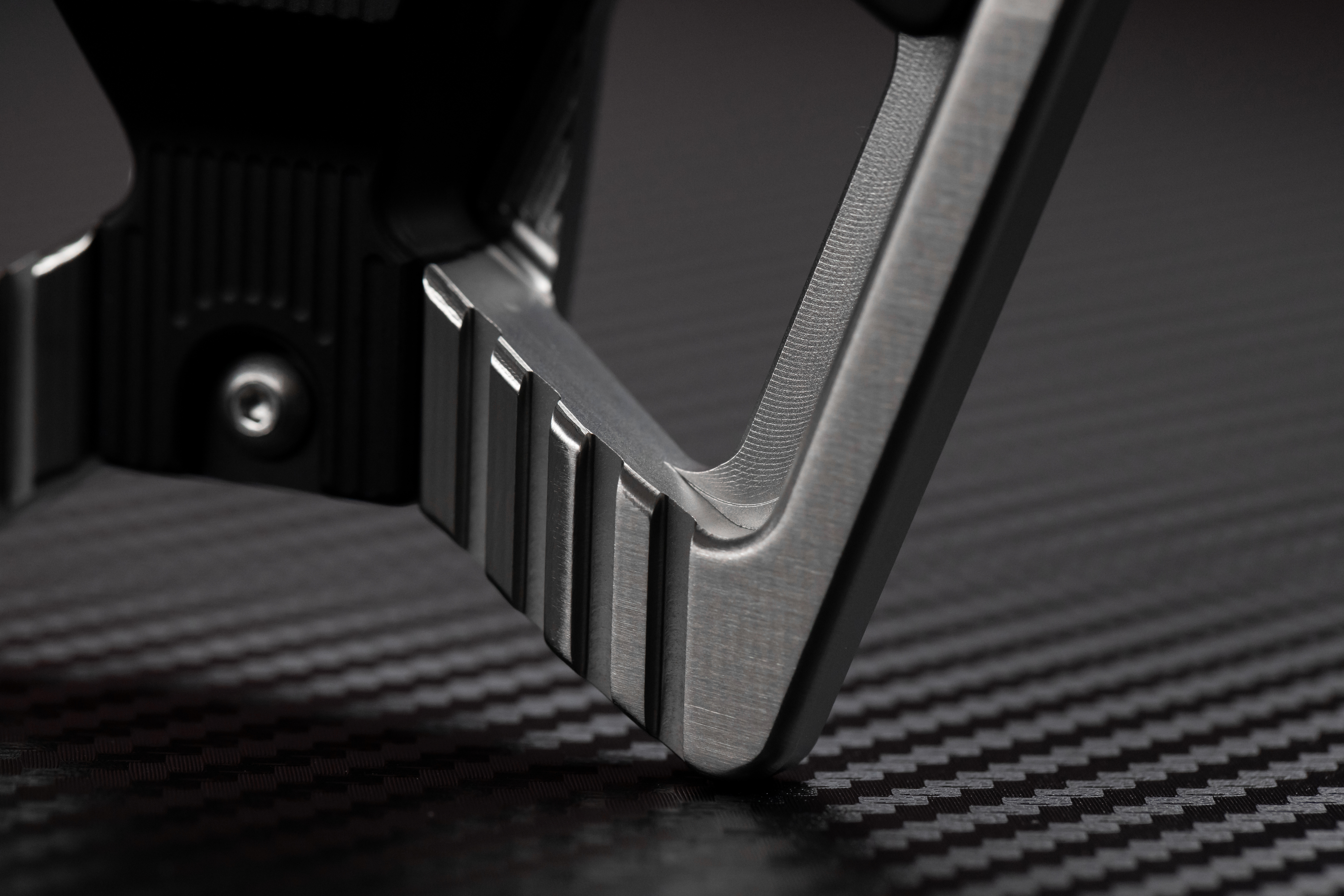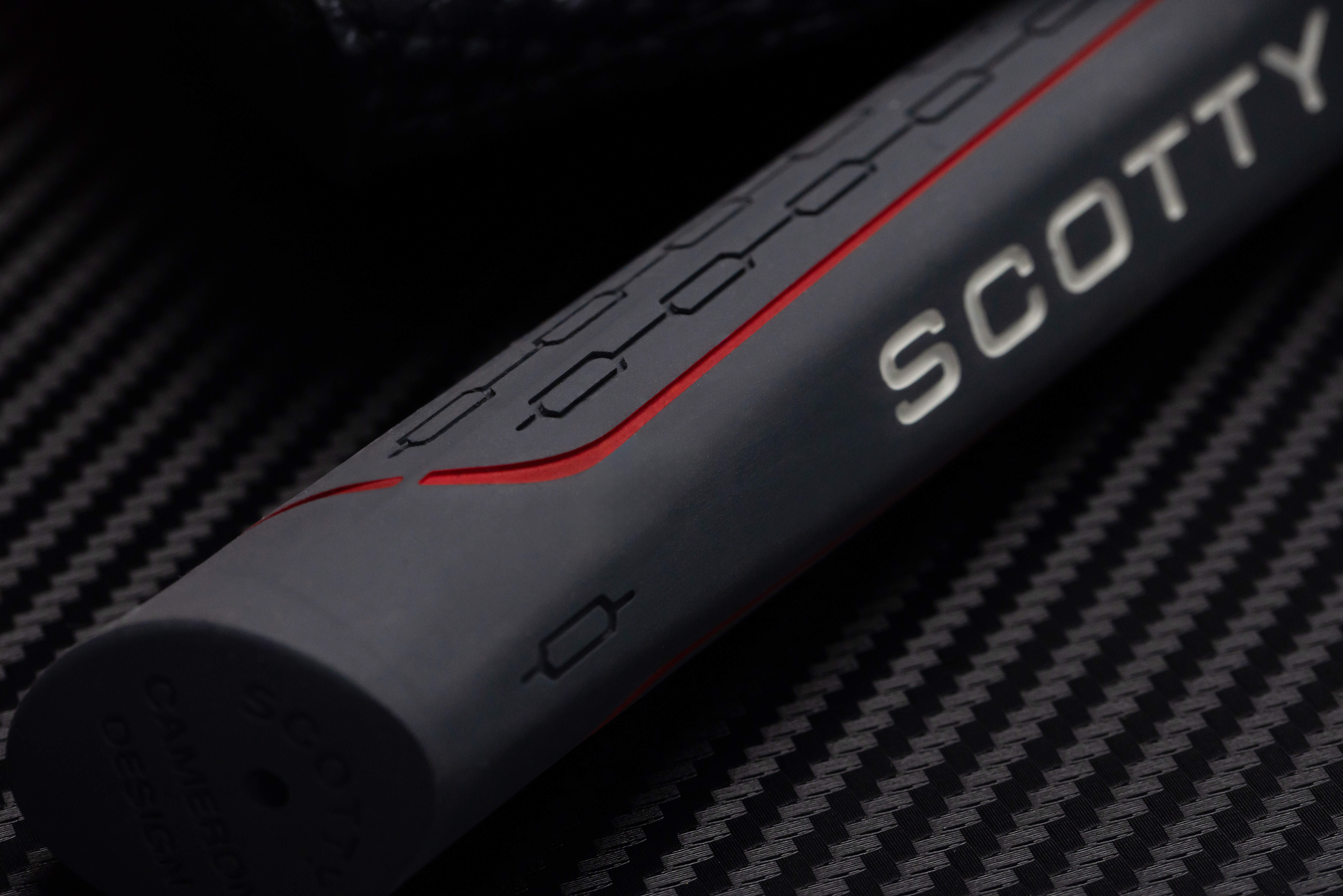 Klíčovou technologickou novinkou jsou celoplošné inserty z Studio Carbon Steel (SCS) s novým chain-link frézováním líce. Karbonová ocel přirozeně tlumí zvuk a zjemňuje pocit při úderu, zatímco struktura frézování omezuje počet kontaktních bodů s míčkem. Výsledkem je měkčí zvuk, ale zachovaná rychlost míče a čitelná odezva, která je pro puttery Scotty Cameron typická.